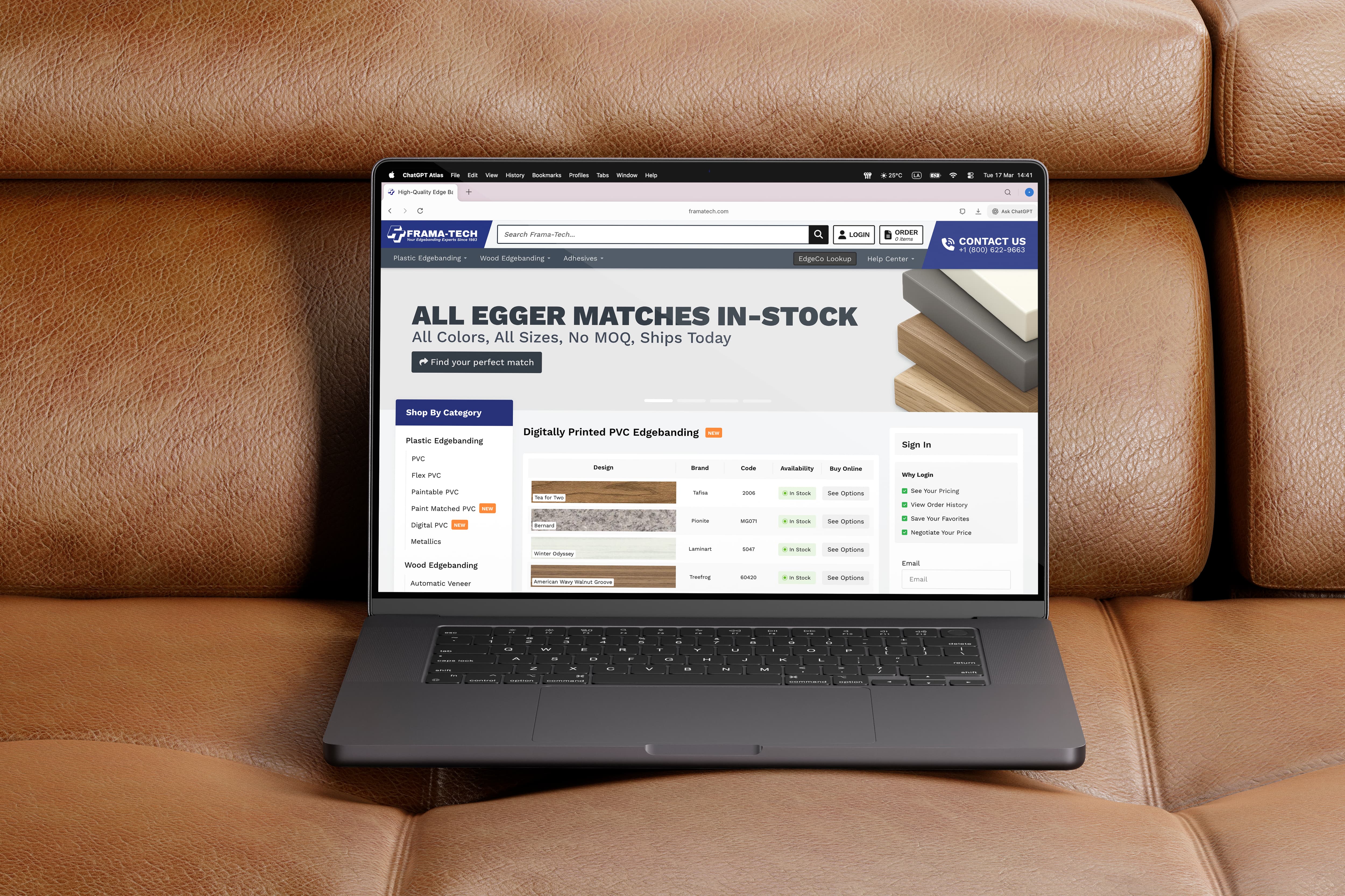 FramaTech is a U.S.-based company specializing in the production and distribution of edgebanding materials, recognized as one of the leaders in North America.I was responsible for redesigning the company’s Shopify website, creating a new experience from scratch that included navigation, menus, banners, collections, and overall layout.After designing each section, I implemented the solution using Liquid and Vue, building a fully customized experience tailored to the company’s needs.